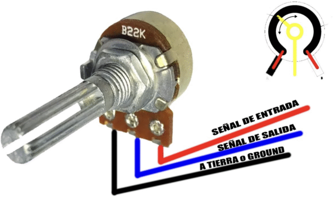 Es un resistor variable manual que se utiliza como un sensor de entrada analógica para controlar valores en un circuito. Permite modificar el voltaje o la resistencia de manera continua girando una perilla, lo que Arduino interpreta como un valor numérico entre 0 y 1023 para enviar a los pines analógicos.